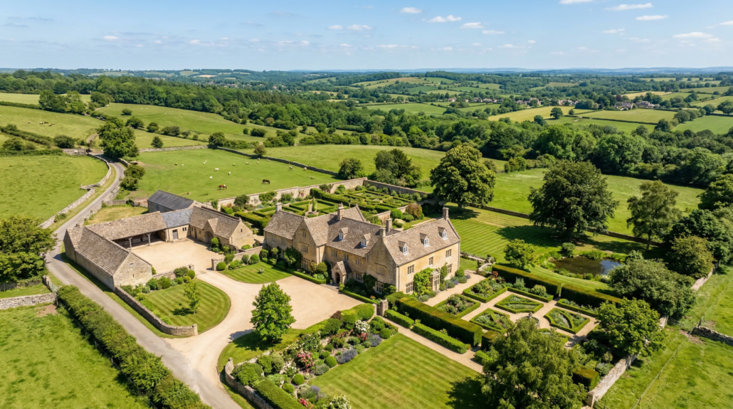 Cotswolds village properties carry almost built-in visual appeal from the air. Stone rooflines, walled gardens, village greens, and church spires create a distinctly English landscape that buyers relocating from cities respond to emotionally — and a well-composed aerial shot of a property in Burford or the Bartons can stop buyers mid-scroll in a way no standard photograph achieves.